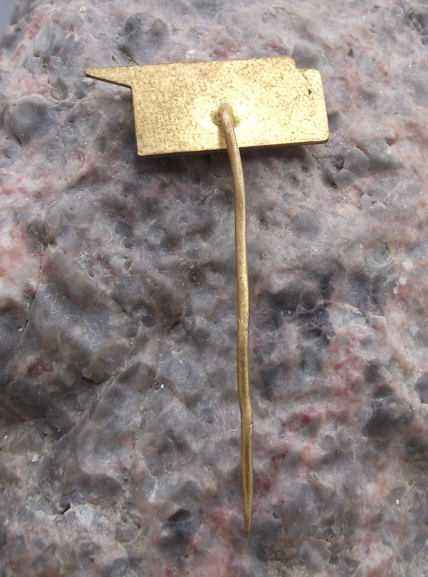 The badge face is 2.2cm wide and has a long, stick pin style fastener to the rear.