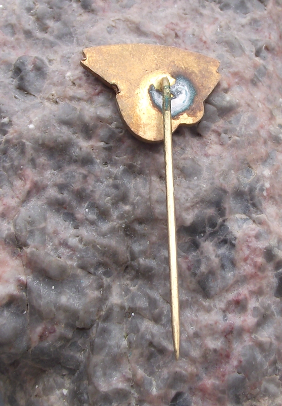 The badge face is 2cm wide and has a long, stick pin style fastener to the rear.