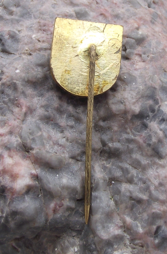 The badge face is 1.6cm high and has a long, stick pin style fastener to the rear.