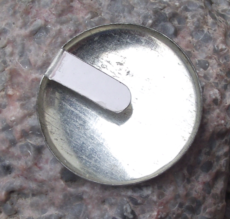 - It is 2.8cm in diameter and has a metal tab to attach it to clothing.