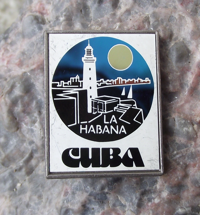 The text on the pin reads 'Habana Cuba' and features a lighthouse