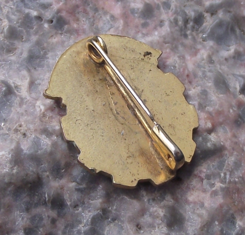 - A pretty, silver coloured metal pin badge with a 2.1cm high badge face and a safety clasp style fastener to the rear.