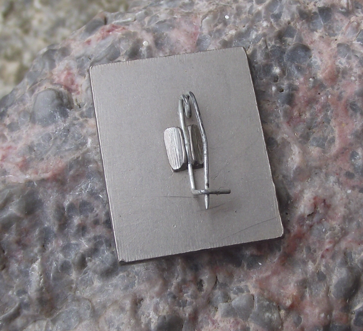 - A pretty silver coloured metal, mirror faced badge with a 2.3cm wide badge face and a safety clasp style fastener to the rear.