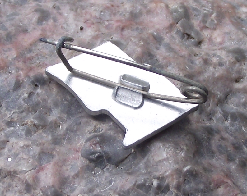 - A pretty, hand painted, silver coloured metal pin badge with a 1.8cm wide badge face and a safety clasp style fastener to the rear.