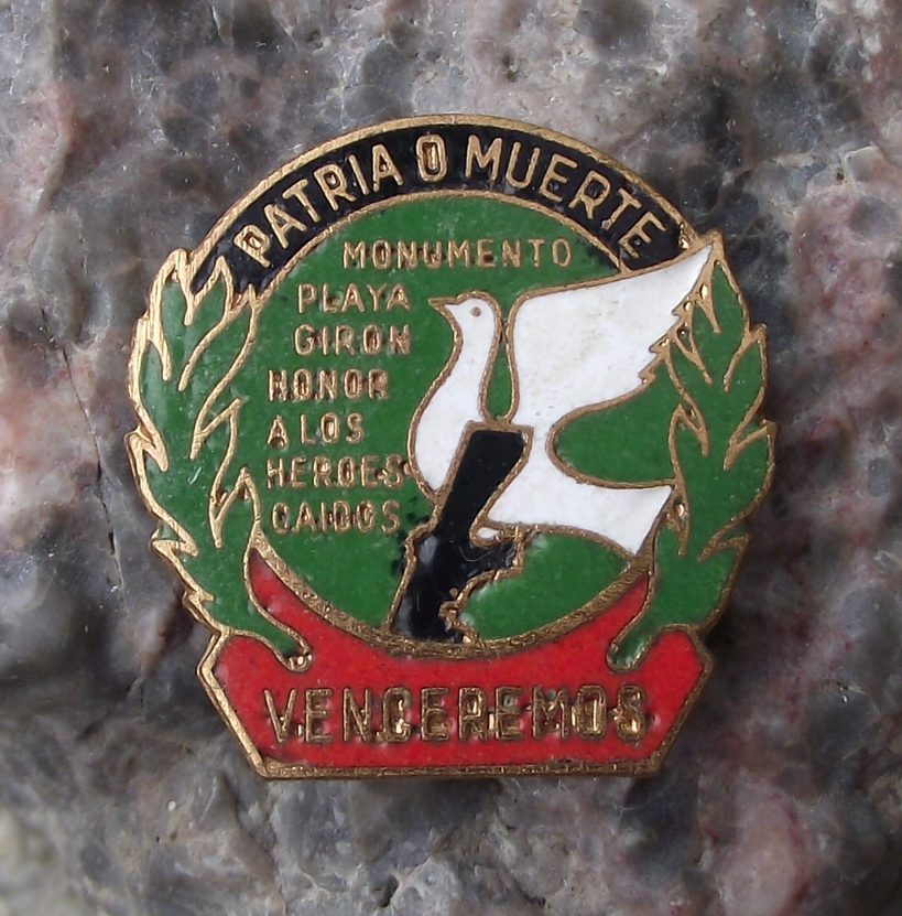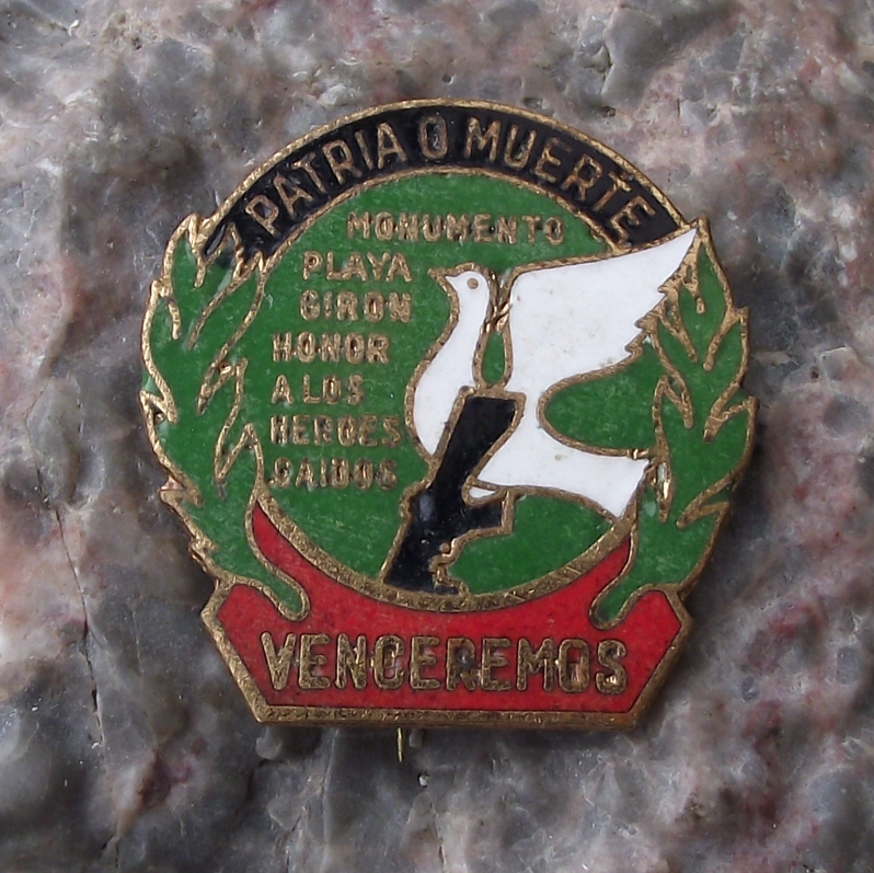 - The badge features the Cuban national slogan PATRIA O MUERTE - Homeland or Death. The badge is a memorial to the fallen soldiers at Playa Giron (the bay of pigs beach invasion).