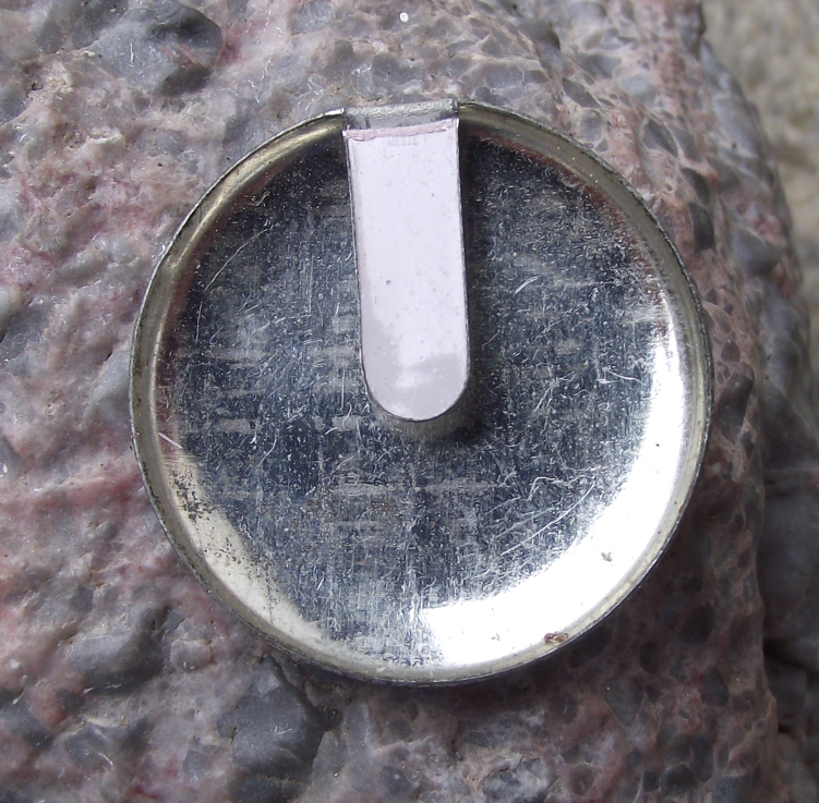- It is 2.8cm in diameter and has a metal tab to attach it to clothing.