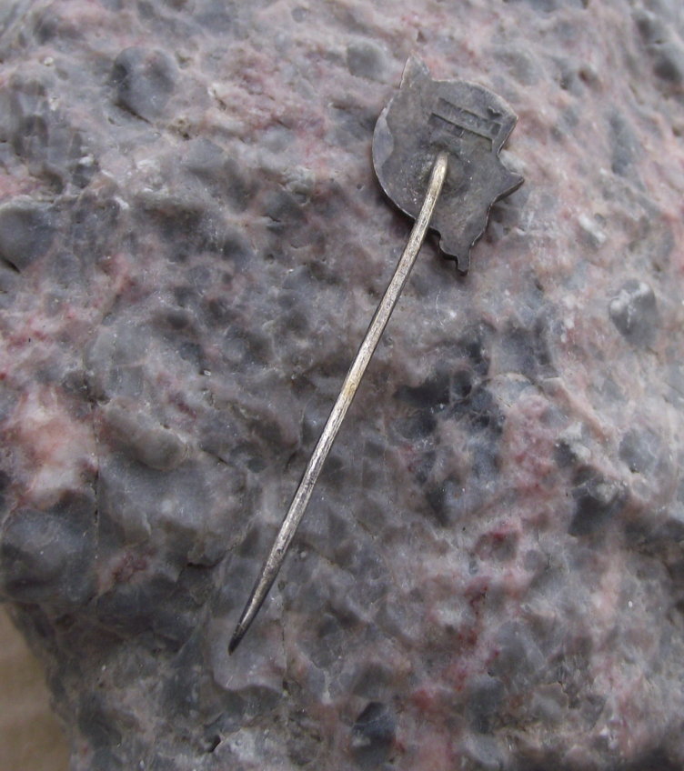 - A pretty, vintage, silver coloured advertising pin badge from former Czechoslovakia advertising membership to the Czechfishing association. The badge face is 1.8cm high and has a long stick pin style fastener to the rear. Featuring a leaping fish and antique rod and reel.