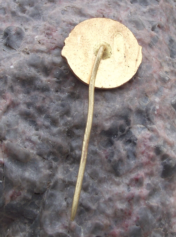 A pretty souvenir pin badge from CSAD in Brno in former Czechoslovakia. The badge face is 1.9cm wide , made from a gold coloured metal and has a stick pin fastener to the rear.
