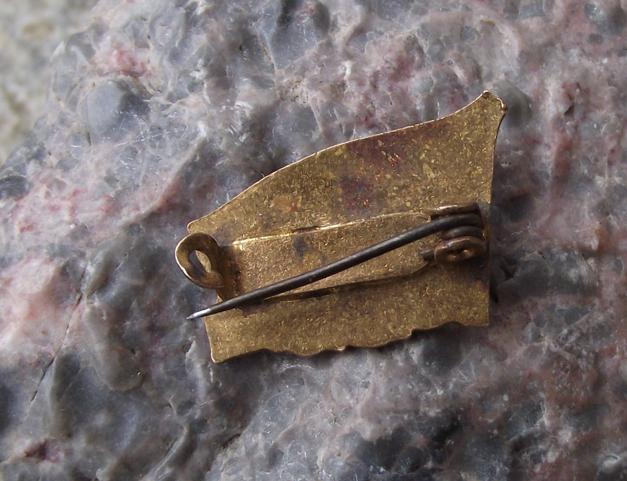 - The badge has a safety clasp style fastener and is 2.4cm wide.