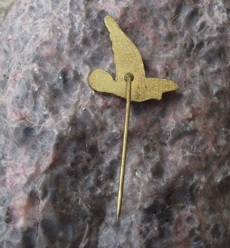 - A gold coloured, metal badge 2.2cm in diameter with a long stick pin style fastener to the rear. Made in the 1990's for the Czech Civic Democratic Party