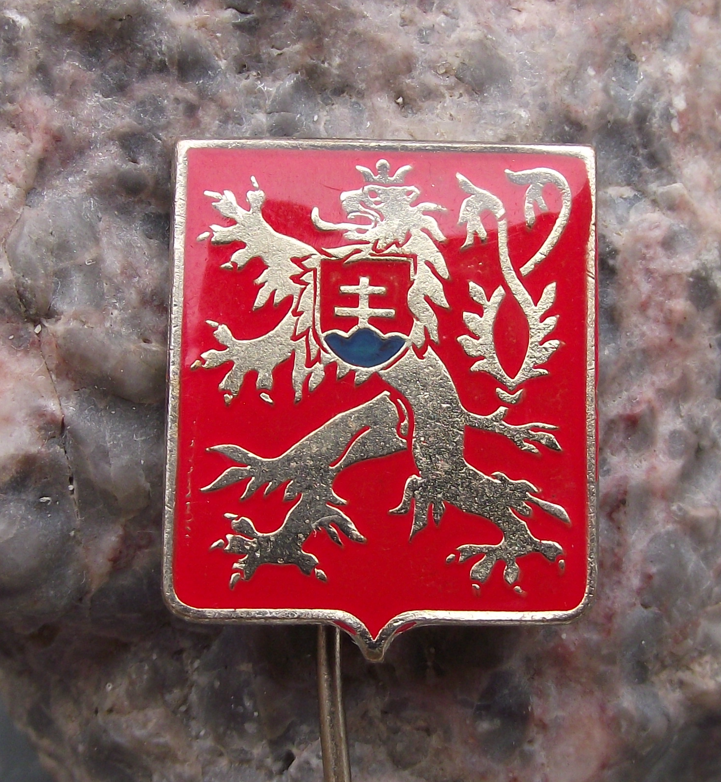 Vintage Czechoslovakia Rampant Lion National Coat of Arms Pin Badge