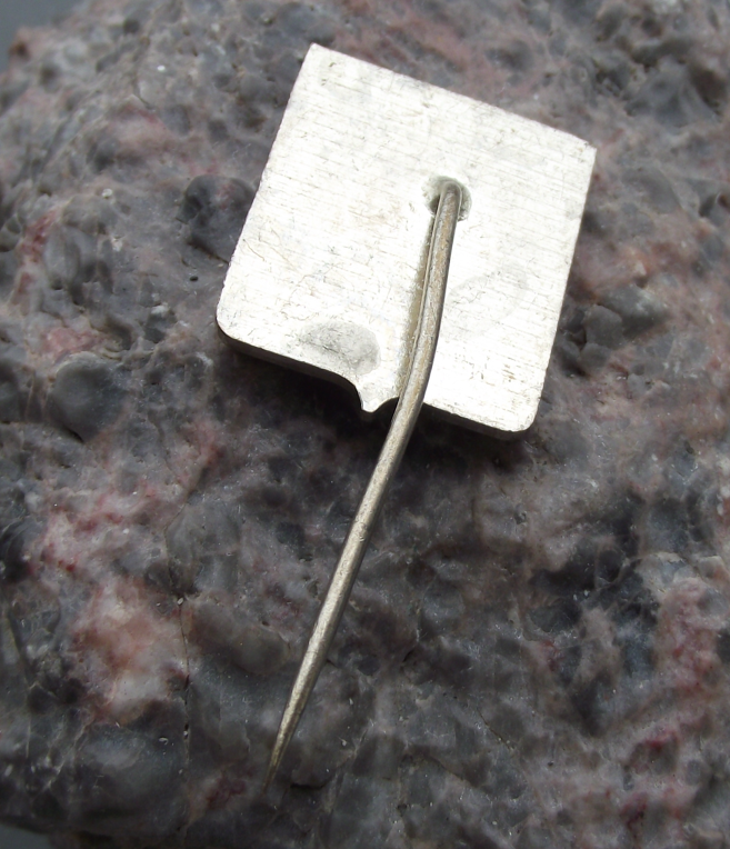 - A pretty, vintage Czech heraldic pin badge. It is made from silver coloured metal. The badge face is 2.5cm high and has a long, stick pin fastener to the rear.