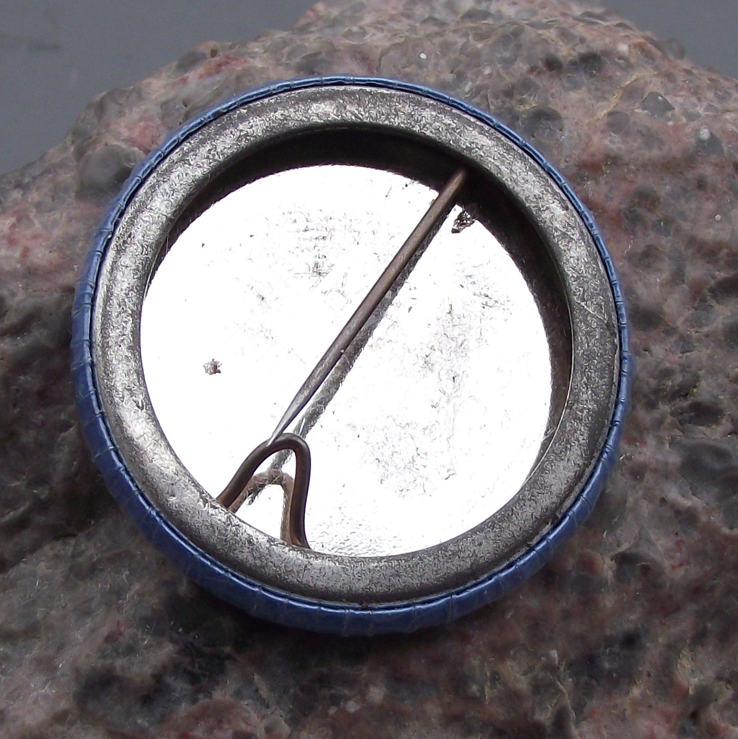 - A pretty silver coloured metal pin badge. The badge face is 3.8cm high and has a safety clasp style fastener to the rear. Featuring a blue dove and the text FRED OG NEDRUSTNING meaning Peace and Disarmament.