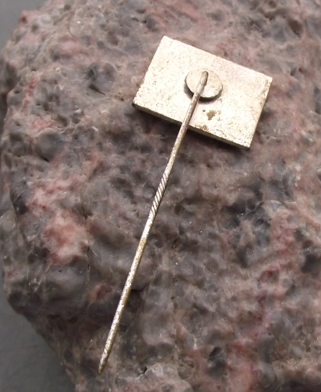 - The badge face is 2cm in diameter and has a long stick pin style fastener to the rear.