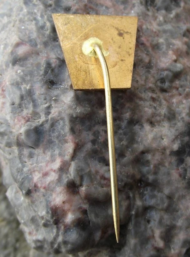 The badge face is 1.8cm high and has a long, stick pin style fastener to the rear.