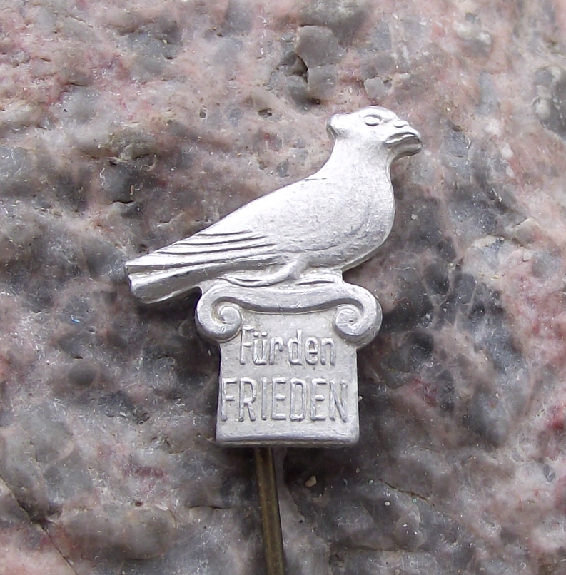 Manufactured in Germany, it features a dove on a pedestal and the text Fur Den Frieden
