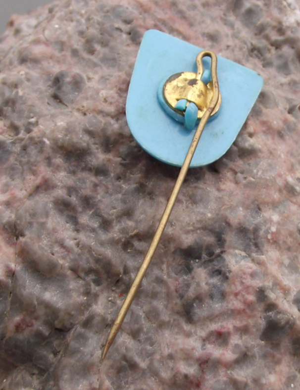 - A metal badge with plastic shield with a 2.1cm high badge face and a stick pin style fastener to the rear.
