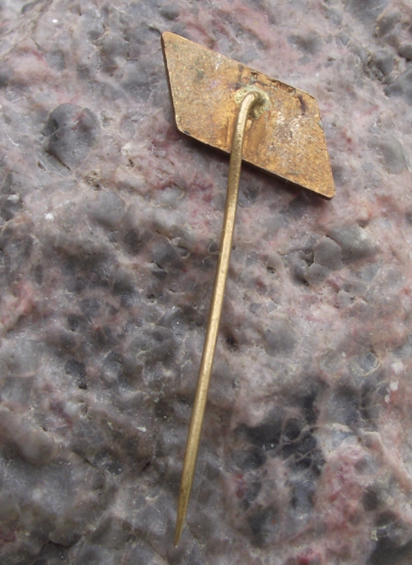 - This is a pretty 1960's gold coloured metal pin badge from former Czechoslovakia. The badge face is 2cm wide and has a long, stick pin style fastener to the rear.