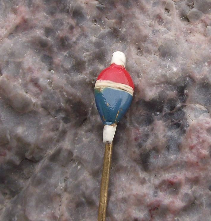 - The badge face is 1.4cm high and has a long stick pin style fastener to the rear and features an enamelled fishing float