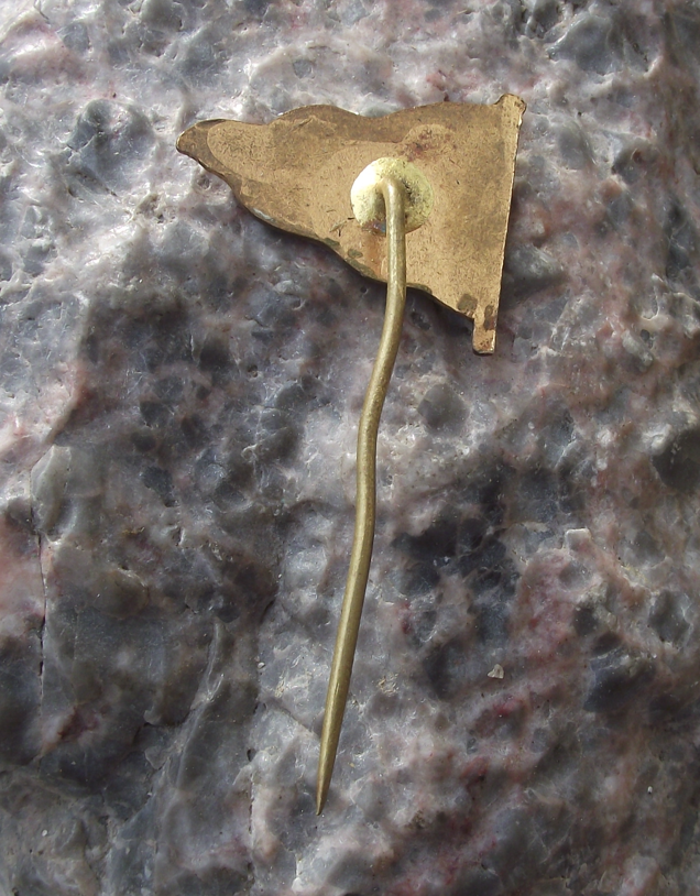 The badge face is 2.2cm wide and has a long, stick pin style fastener to the rear.