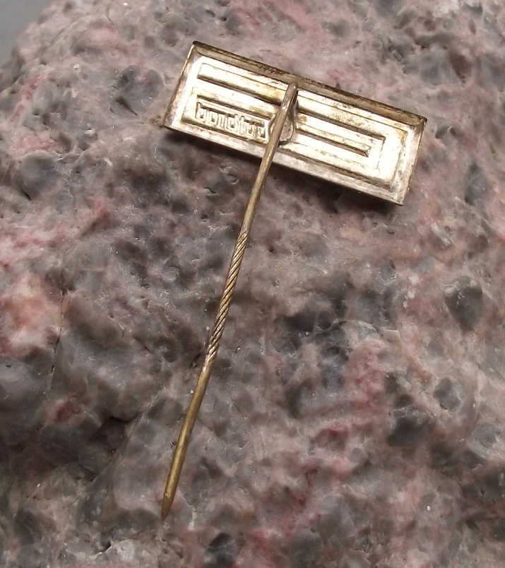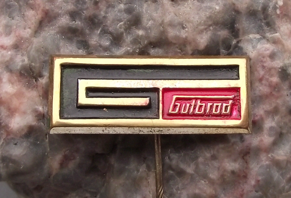 - A pretty, vintage, silver coloured metal pin badge in good condition from Gutbrod who make electrical storage equipment.