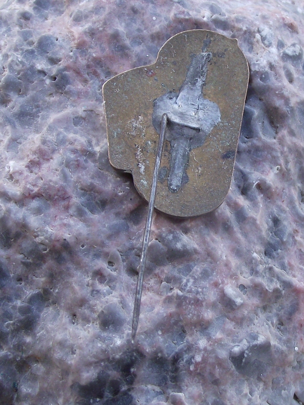 - A pretty 1949 gold coloured metal pin badge featuring the IUS logo.