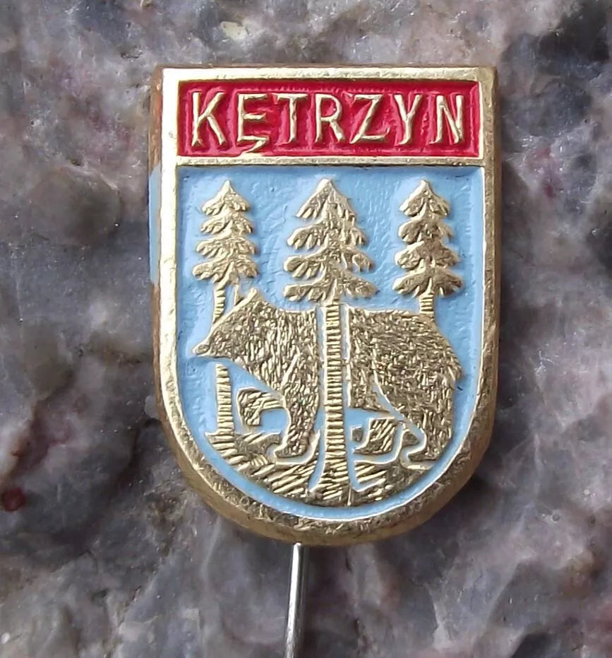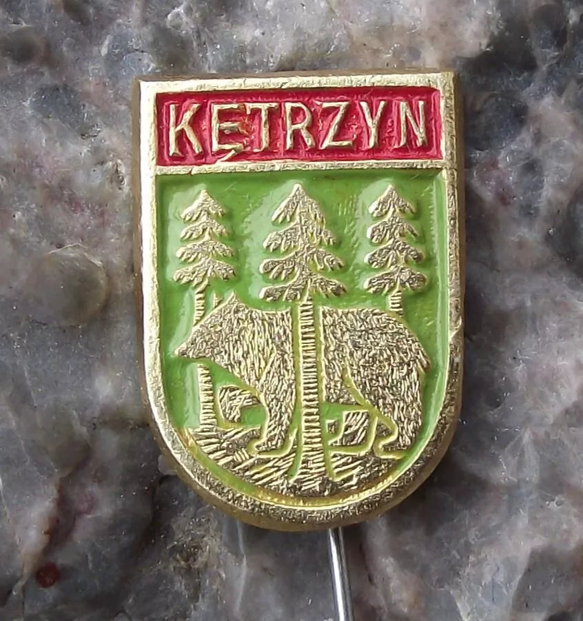 Vintage Ketrzyn Bear Polish City Poland Heraldic Coat of Arms Crest Pin Badge