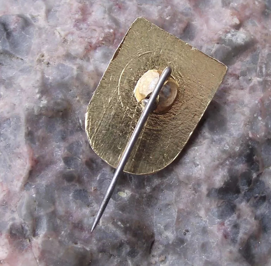 - A very pretty, vintage Polish heraldic pin badge. It is made from metal with painted interiors. The badge face is 1.7cm high and has a short, stick pin fastener to the rear.