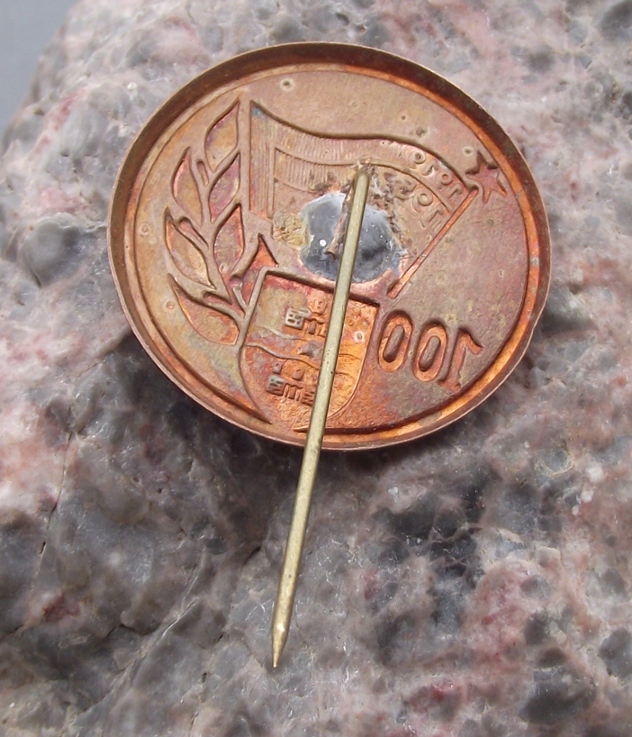 - A large, gold metal pin badge 3cm high with a long stick pin style pin fastener to the rear. Celebrating the Hungarian pioneer movement.