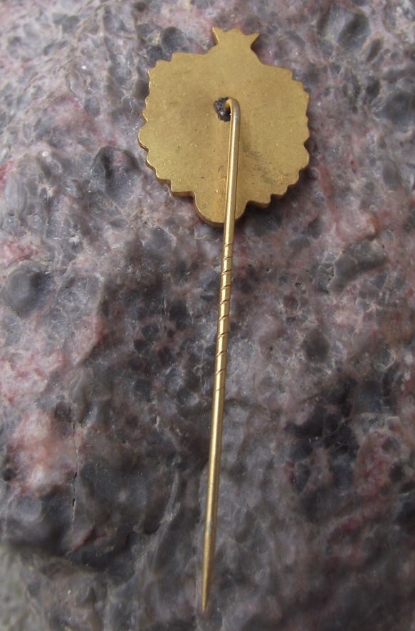 The badge face is 2.4cm high and has a long, stick pin style fastener to the rear.