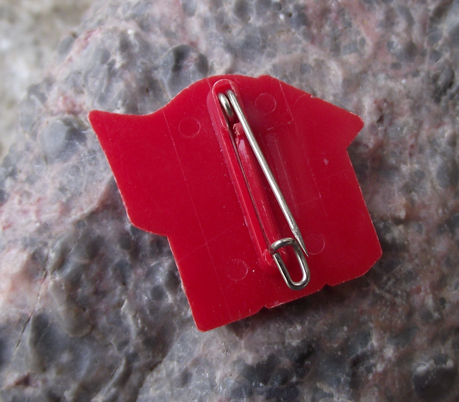 - The badge has a safety clasp style fastener and is 2.6cm wide.