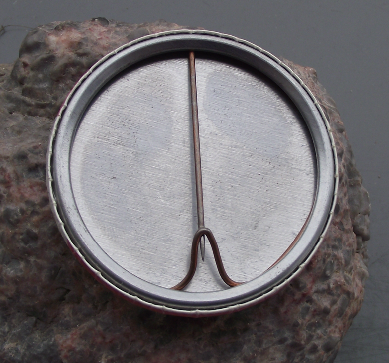 - The badge has a safety clasp style fastener and is 5.8cm wide.