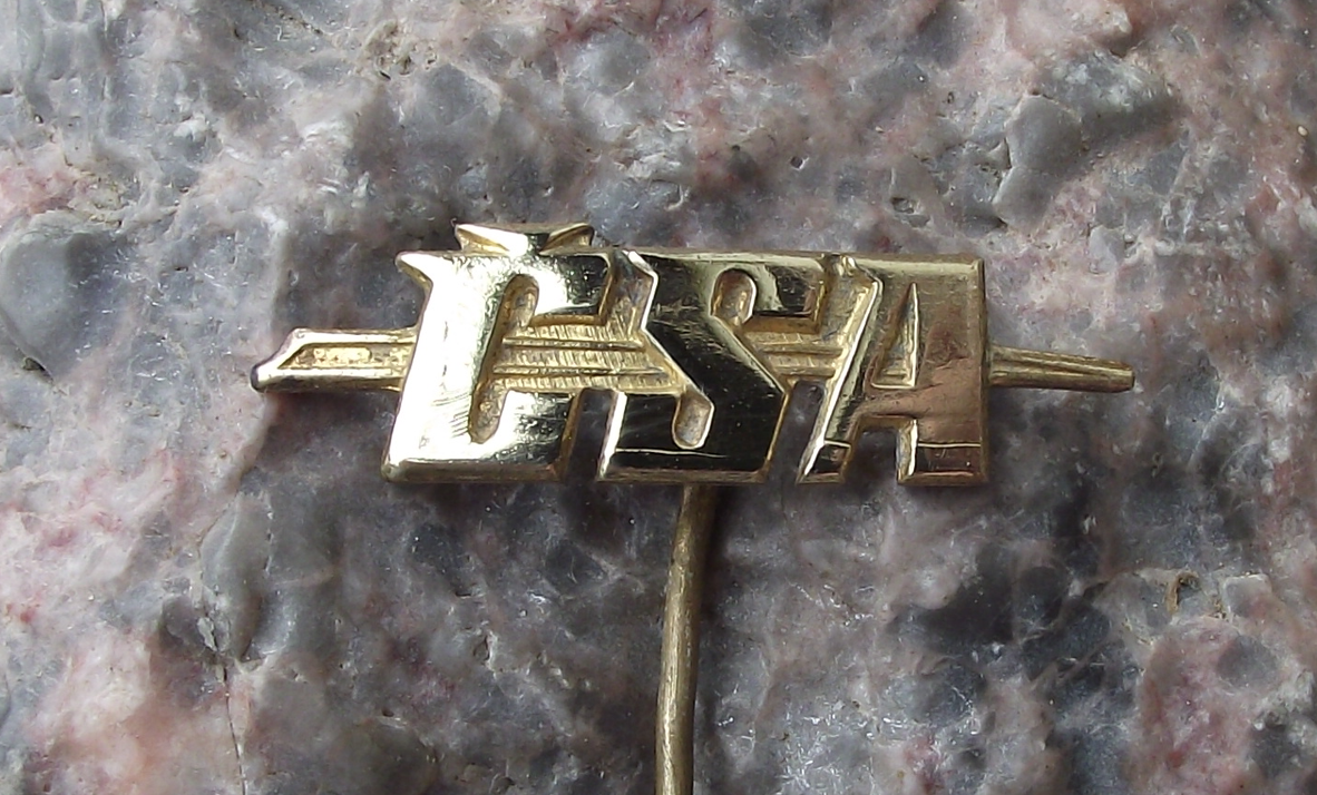 A pretty, gold coloured metal pin badge from the 1960's advertising CSA with the logo that appeared on the printed material.