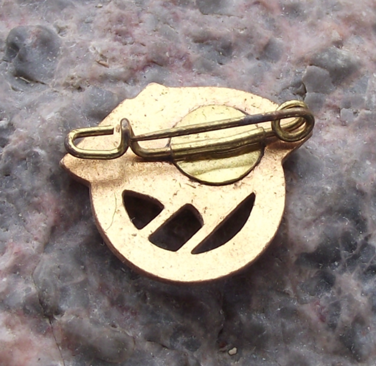 - This is a pretty pin badge in excellent condition, 2cm wide and made of gold coloured metal with a safety clasp style fastener to the rear.