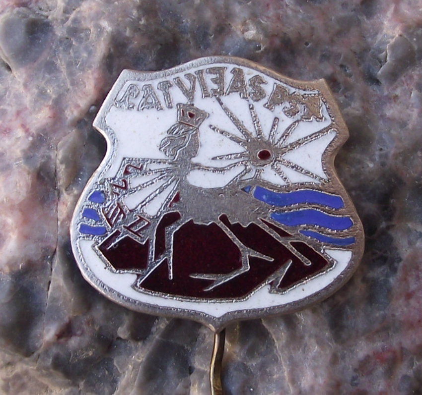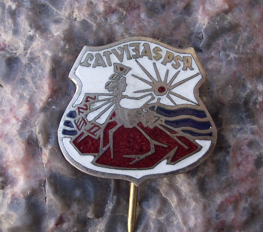 - A very pretty silver coloured metal pin badge from Latvia when it was part of the former the former Soviet Union advertising the Kurzeme region.
