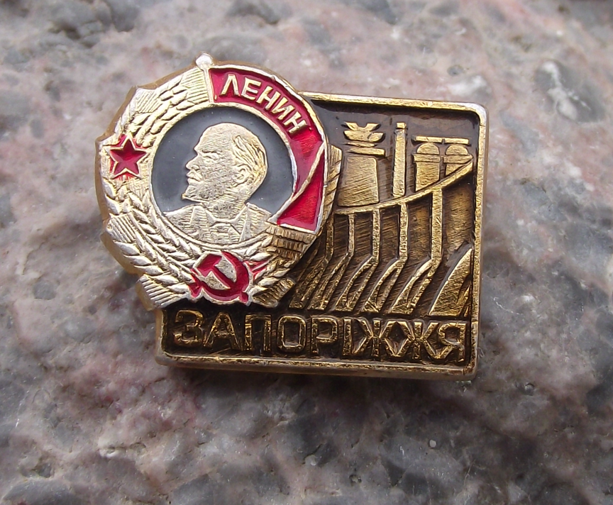 Vintage Order of Lenin Hydroelectric dam Zaporizhzhia Ukraine Pin Badge