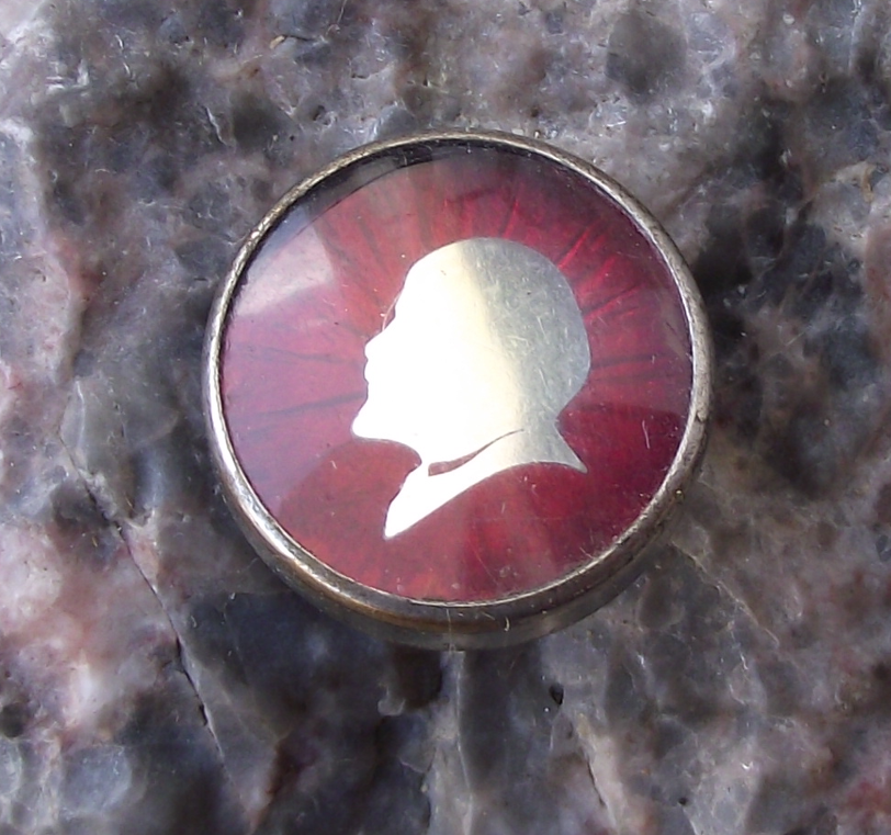 Vintage Lenin Head Profile Communist Leader Radiant Mirror Pin Badge