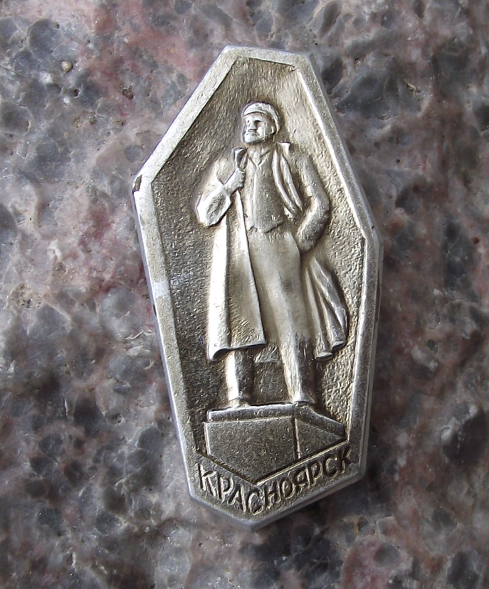 The badge celebrates the Krasnoyarsk statue of Lenin that is still standing to this day.