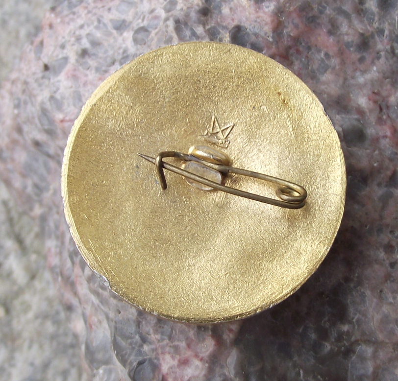 - A pretty gold coloured metal pin badge. The badge face is 3.1cm high and has a safety clasp style fastener to the rear. Featuring a white dove and the Russian text LENINGRAD PEACE FUND
