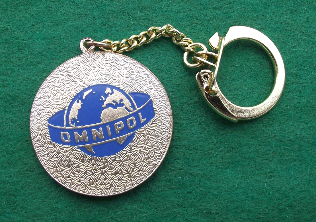 The keychain is 10cm from ring to pendant and is made of a gold coloured metal. The rear side has the logo of Omnipol, the Czech aviation import/export company who, in the 1950's, also managed the import/export of sporting weapons.