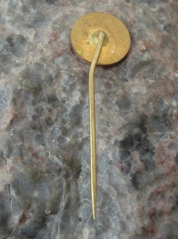 The badge face is 1.3cm in diameter and has a long, stick pin style fastener to the rear.
