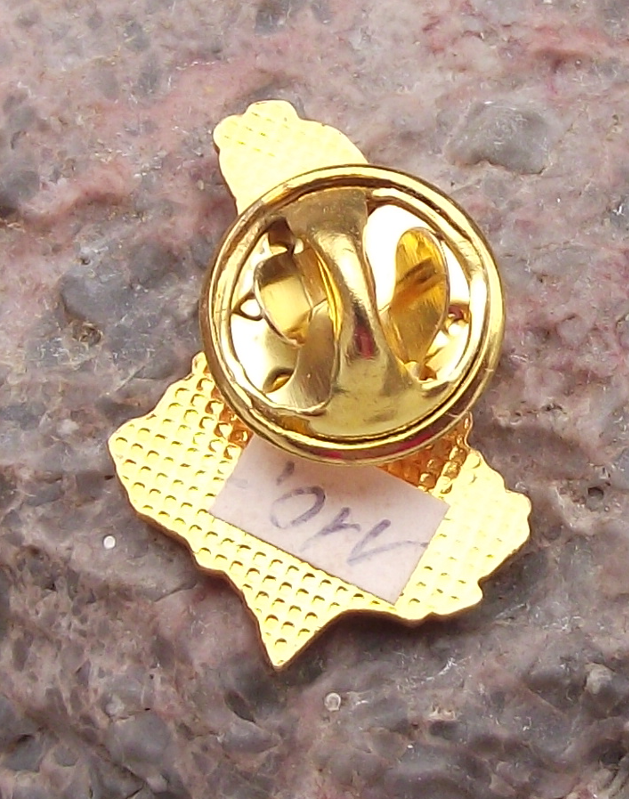 - A gold coloured, metal badge 2.5cm high with a modern butterfly clasp style fastener to the rear. Featuring the Luxembourg colours on a map shaped pin.