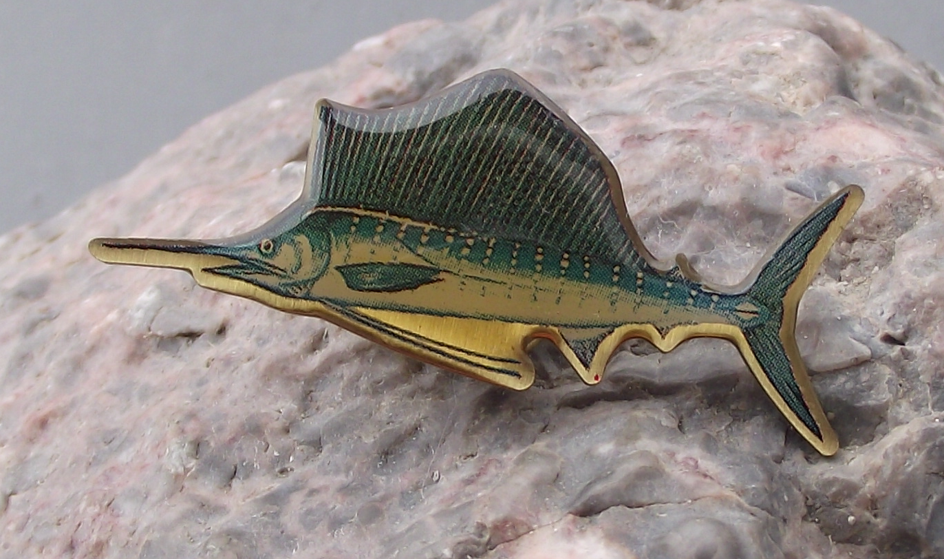 Vintage Marlin Swordfish Fishing Sea Fish Brooch Pin Badge