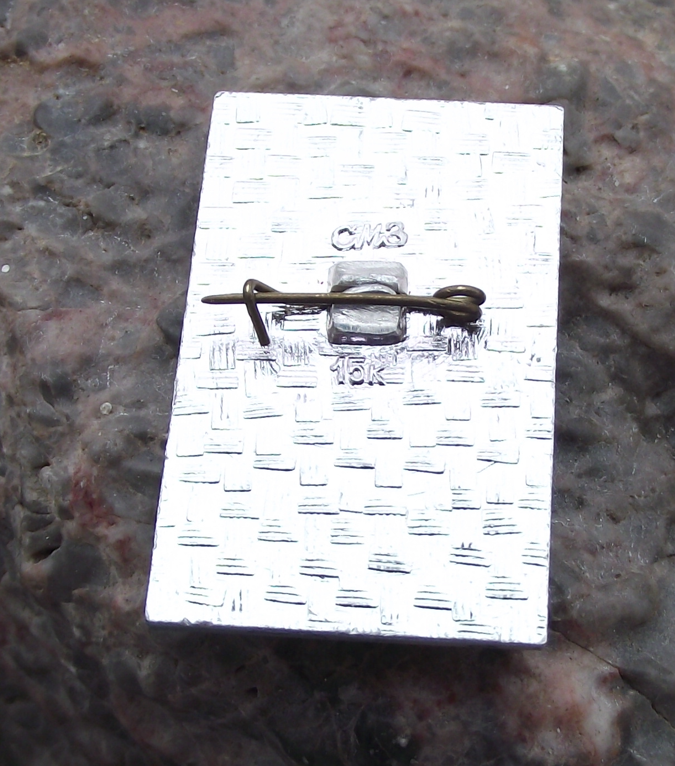 - A silver coloured metal badge with a 3cm high badge face and a safety clasp style fastener to the rear.