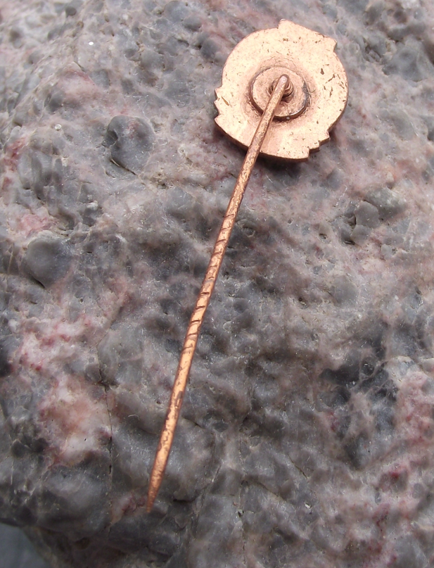 The badge face is 1.7cm high and has a long stick pin style fastener to the rear.