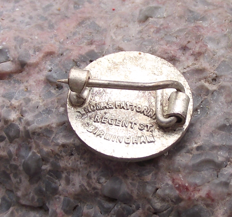 - A vintage silver coloured metal pin badge 1.6cm wide with a safety clasp style fastener to the rear.