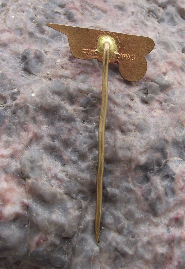 A very pretty gold coloured metal pin badge from former Czechoslovakia. It is the official worker's uniform pin badge