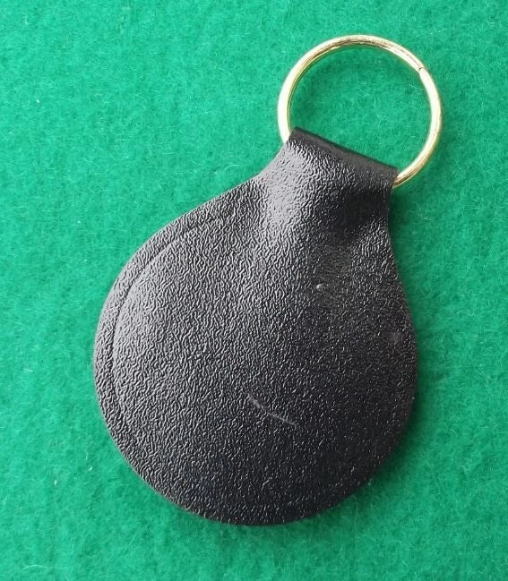 The fob is made of black leather, with a sturdy compression style fastener.