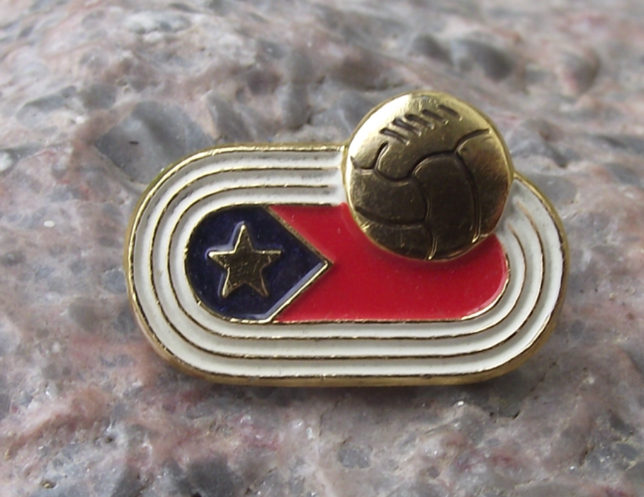 A pretty, vintage pin badge made in support of PFC CSKA Moscow of the former USSR, Featuring the club flag and a laced football.