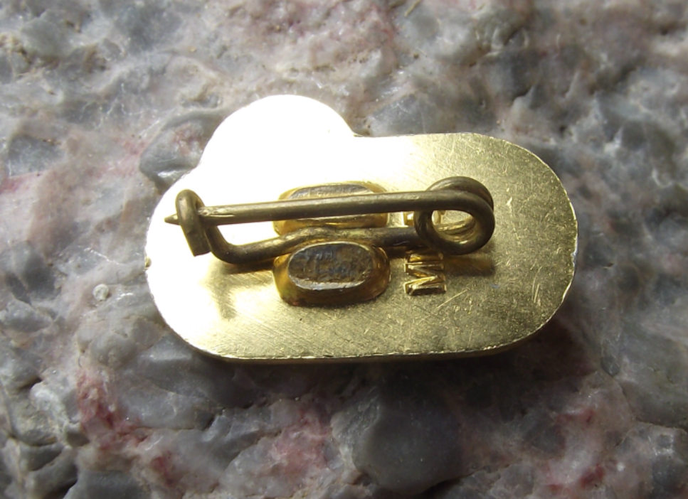 The badge face is 1.9cm wide and has a safety clasp style fastener to the rear.